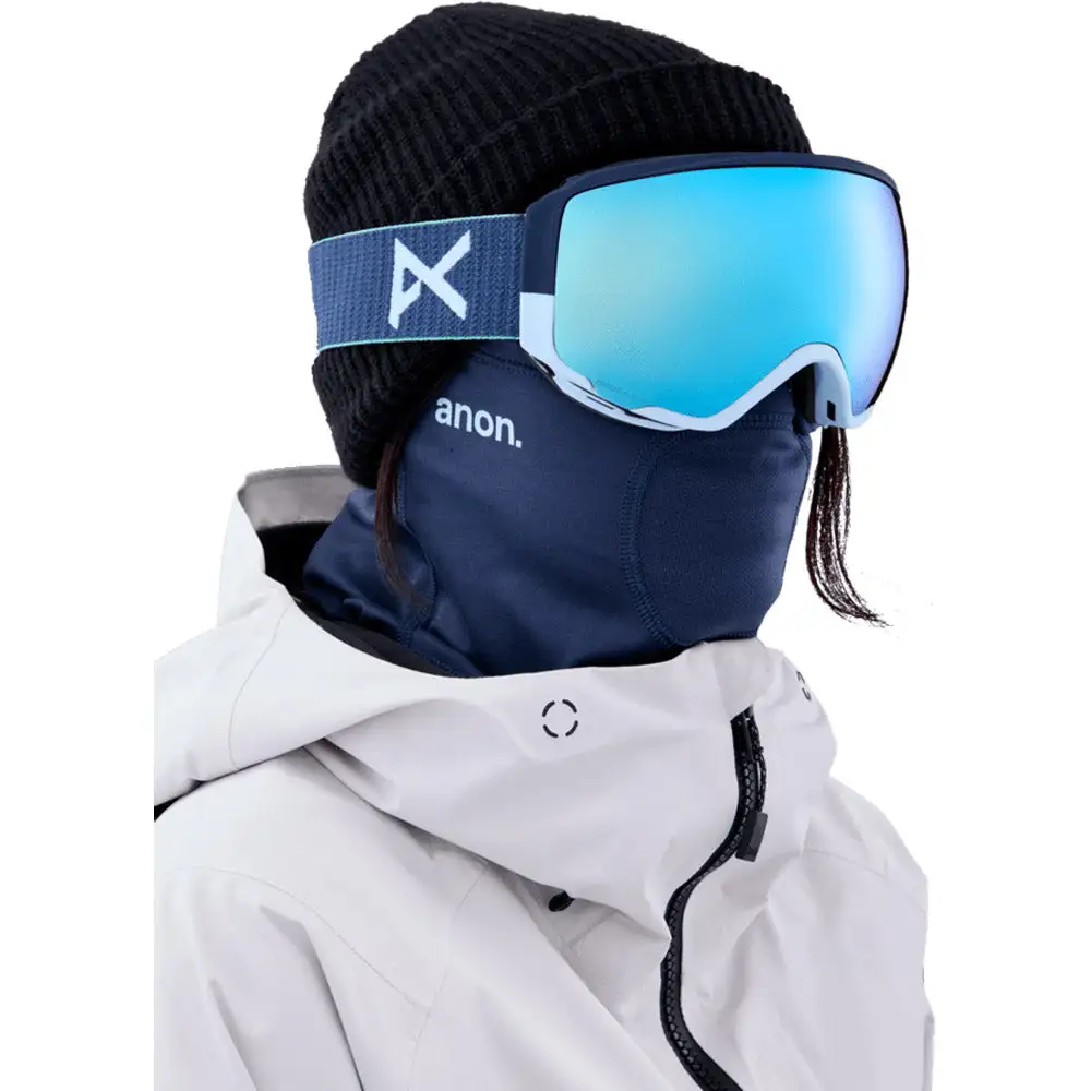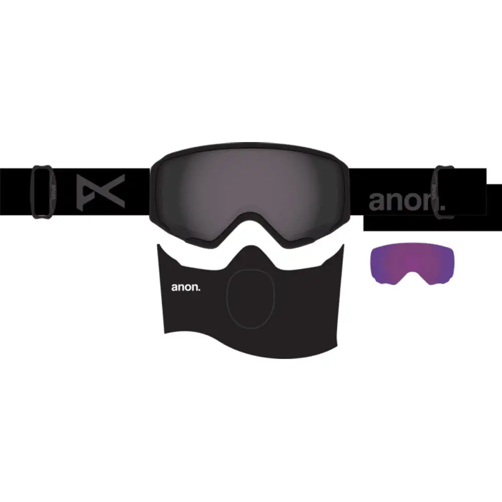 Anons exclusive magnetic face mask integration (MFI) provides seamless coverage from snow, wind, and sun when combined with a compatible face mask or hood. Full-perimeter venting maximizes airflow for fog-free clarity in all conditions. Includes an MFI face mask, a bonus lens for cloudy conditions, and a microfiber bag for storage and lens cleaning.